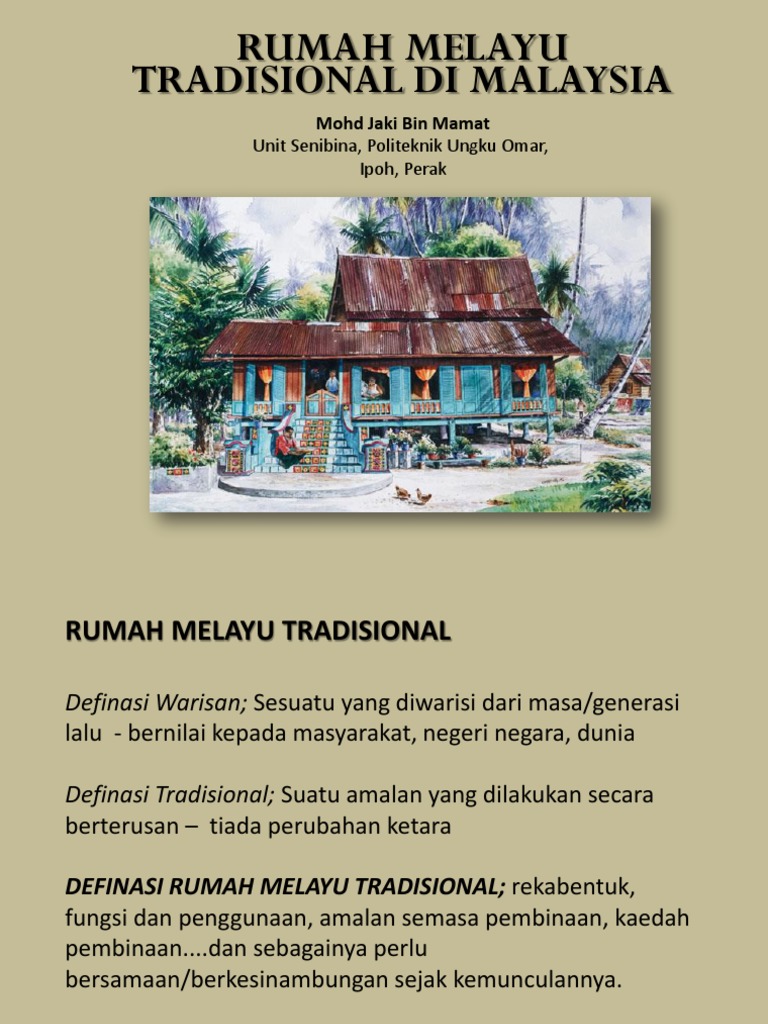 Mohd Firrdhaus Mohd Sahabuddin PENGENALAN Rumah Tradisional Melayu merupakan antara senibina terawal yang didirikan di Gugusan Kepulauan Nusantara Malay Archipelago. RUMAR TRADISIONAL MELAYU SENI BINA YANG yang dilupakan masapdf Islam yang amat mendalam. Rumah tradisional atau juga dikenali Rumah Melayu tradisional adalah sebahagian warisan seni bina Malaysia yang sangat bernilai.