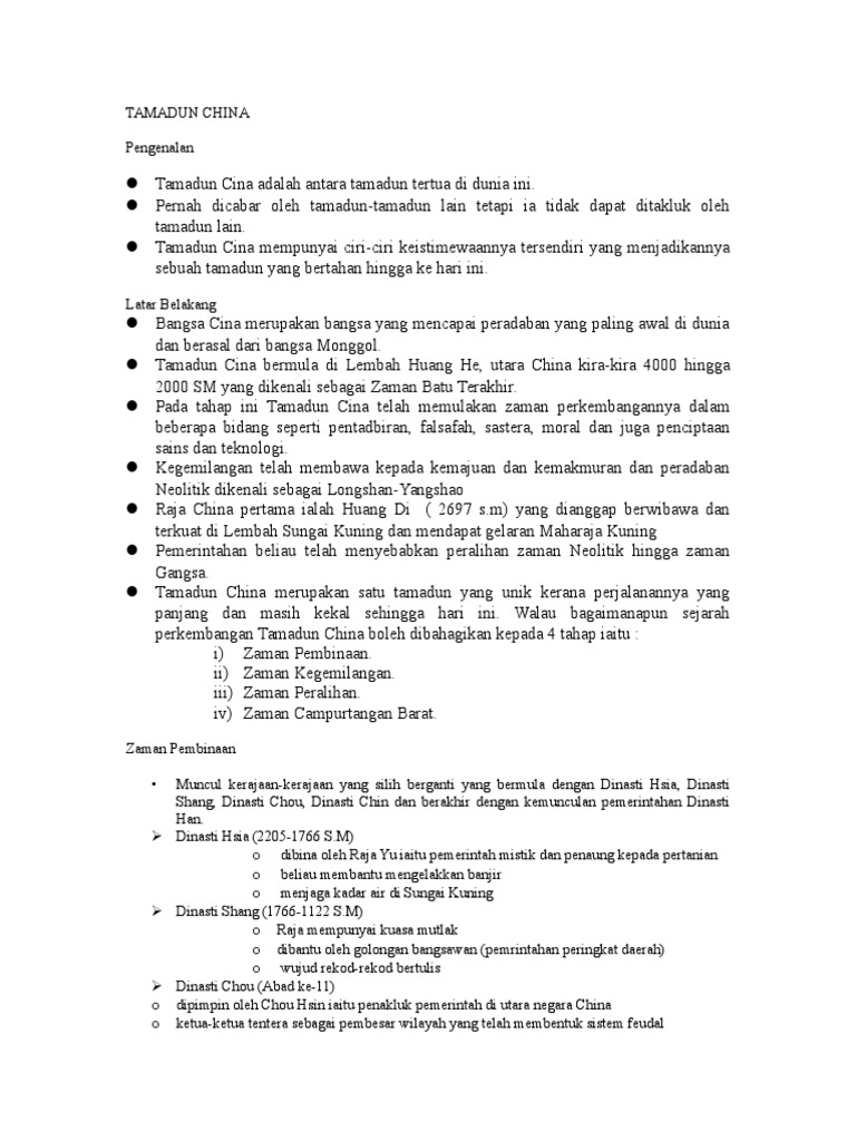 Ringkasan Tamadun China Pdf Document