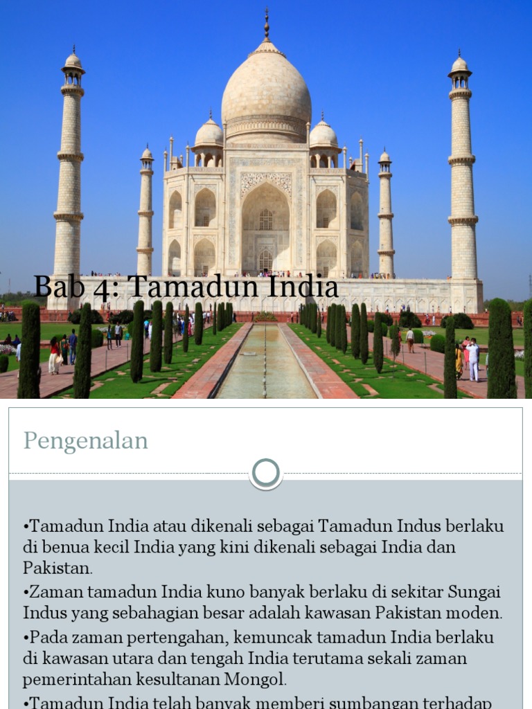 Seni bina tamadun india taj mahal. Taj Mahal terletaknya di tebing Sungai Jumna berhampiran Agra India. Mempuyai ciri-ciri ini kerana ia didirikan. At the moment Powtoon presentations are unable to play on devices that dont support Flash.