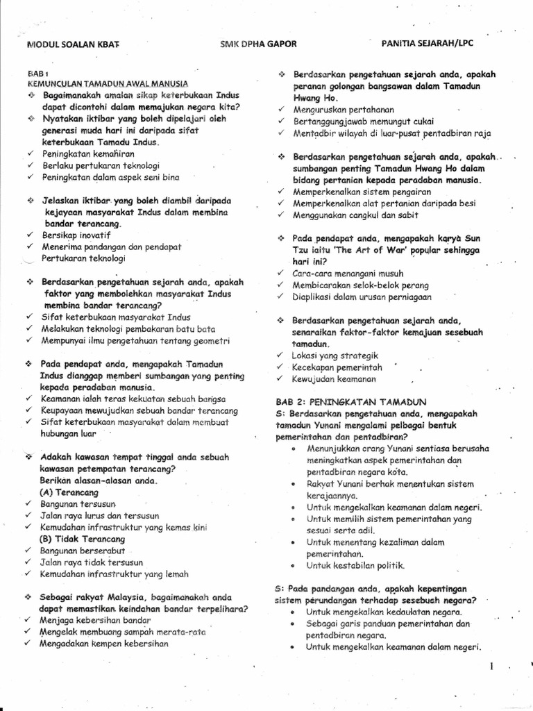 Spm Soalan Kbat Sejarah Pdf Powered By Andrew Choo Soalan Kbat Sejarah Spm Mengikut Bab F2 Bertukar Tukar Teknologi Dengan Negara Yang Lebih Maju H2a Course Hero. Learning Port Interactive LPI merupakan portal pembelajaran yang dibina selaras dengan keperluan silibus pelajar Tahun 1 hingga Tingkatan 5. Seni Bina Tamadun Rom.