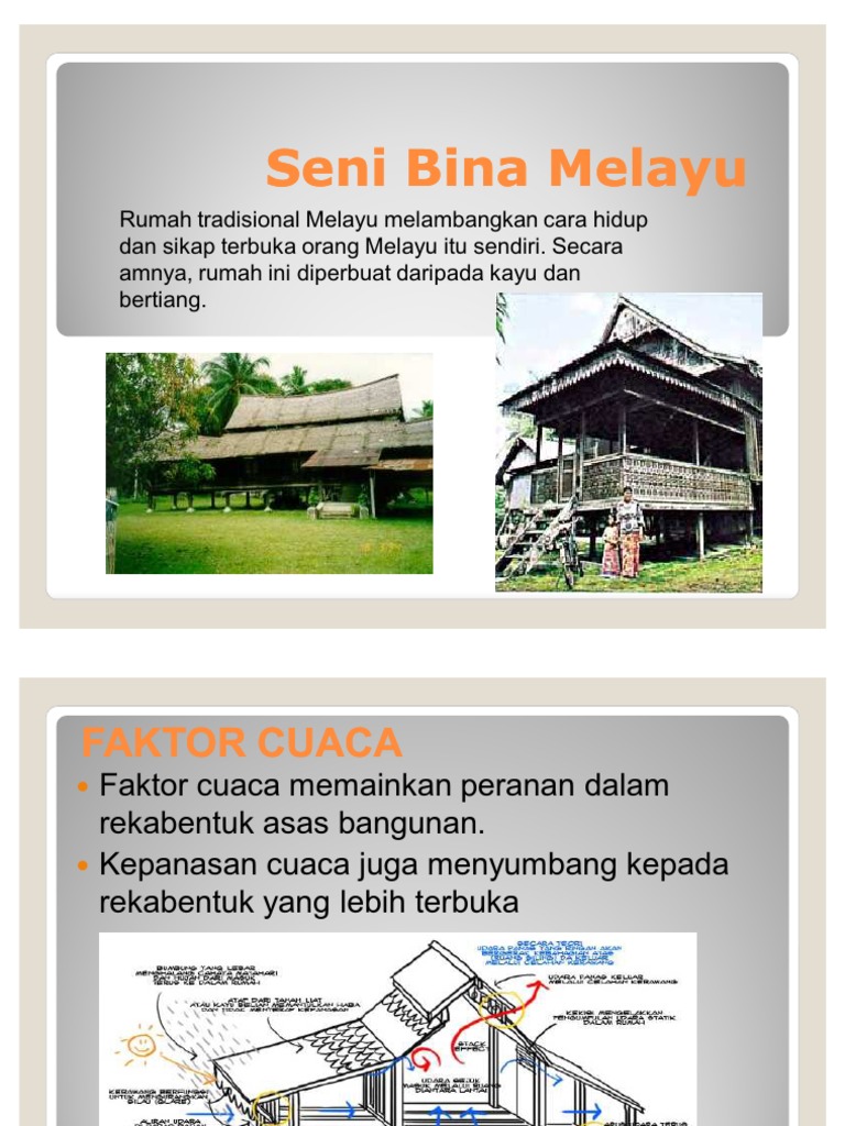 Faktor-faktor ini telah mempengaruhi reka bentuk awal rumah tradisional Melayu rajah. Pelibatan masyarakat dapat dilihat menerusi aktiviti gotong-royong untuk membina rumah Melayu tradisional. View Nota Senibina Rumah Tradisional T5pdf from CHE 111 at Sabah Tshung Tsin Secondary School.