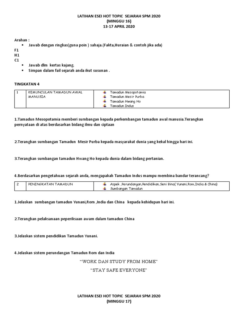 Pengertian Tamadun dan Ciri Tamadun Awal. Soalan Sejarah tingkatan 4 - Ujian Akhir Tahun 20182019 by ahmad1suhaimi-2. Soalan Target SEJARAH SPM 2012 TAJUK-TAJUK FOKUS SEJARAH KERTAS 2 SPM 2012.