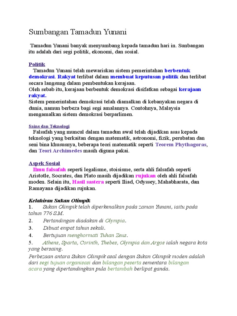 Sumbangan Tamadun Yunani Politik Demokrasi Rakyat Terlibat Dalam Membuat Keputusan Politik Dan Terlibat. Sejarah Bab 1 Tamadun Mesir Purba Apakah Sumbangan Tamadun Mesir Purba. 10 markah F1 menggunakan sistem pemerintahan berbentuk republik.